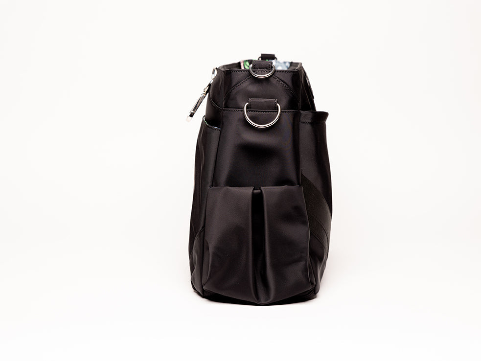 - Pleated side pockets which create a huge amount of room while still looking sleek.